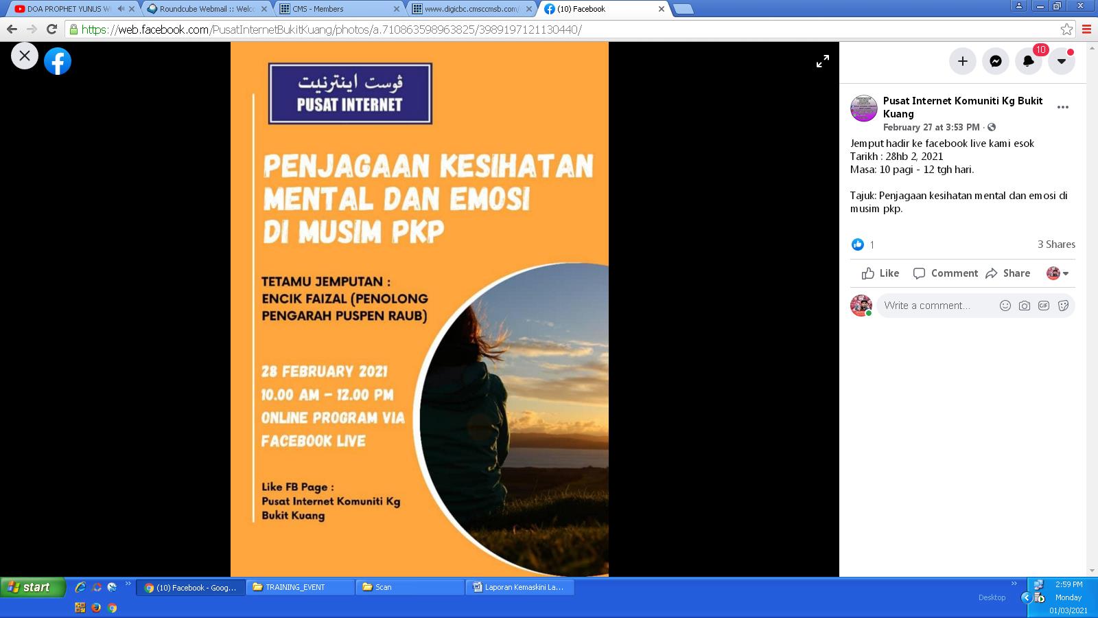 PENJAGAAN KESIHATAN MENTAL DAN EMOSI DI MUSIM PKP SECARA ONLINE DI FB LIVE PIK KG. BUKIT KUANG