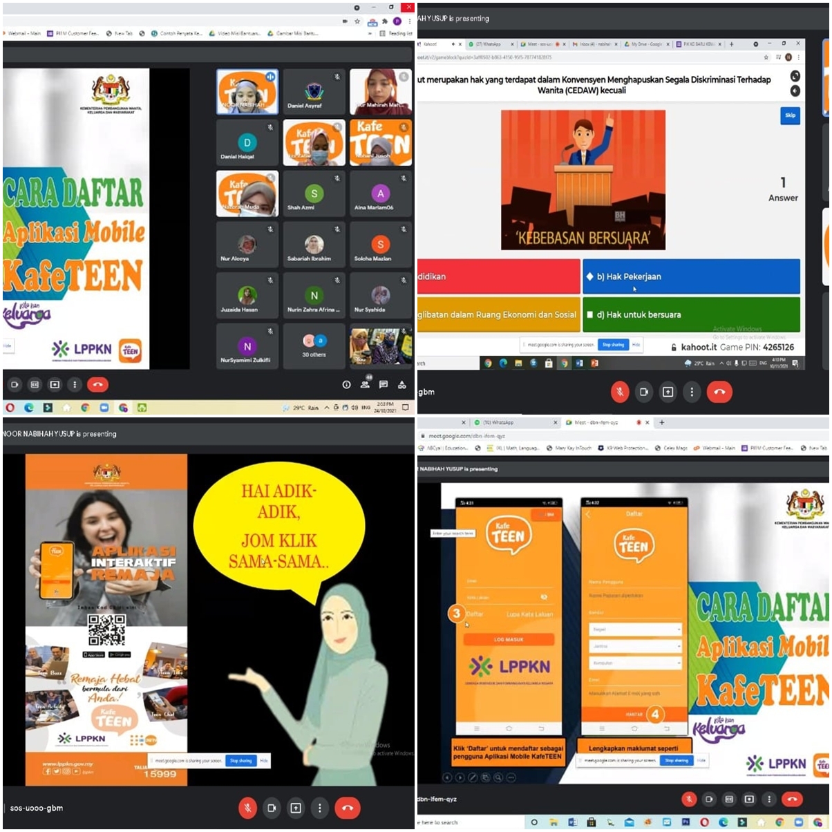 • Pukul 2:30 petang persiapan tempat ,program mykafeteen di atas talian menggunakan google meet.